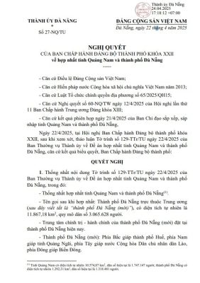 THỐNG NHẤT HỢP NHẤT TỈNH QUẢNG NAM VÀ THÀNH PHỐ ĐÀ NẴNG